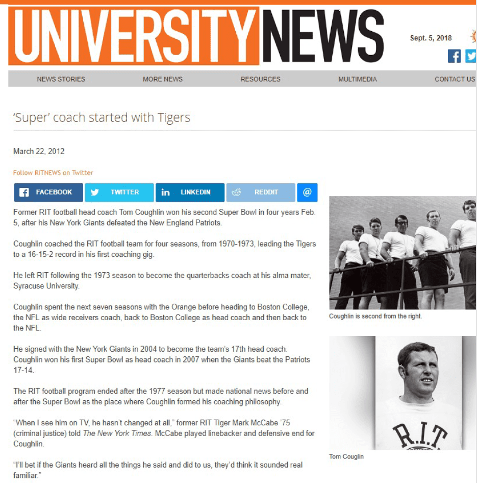 RIT Football — Built by Coughlin. We Live the Legacy.